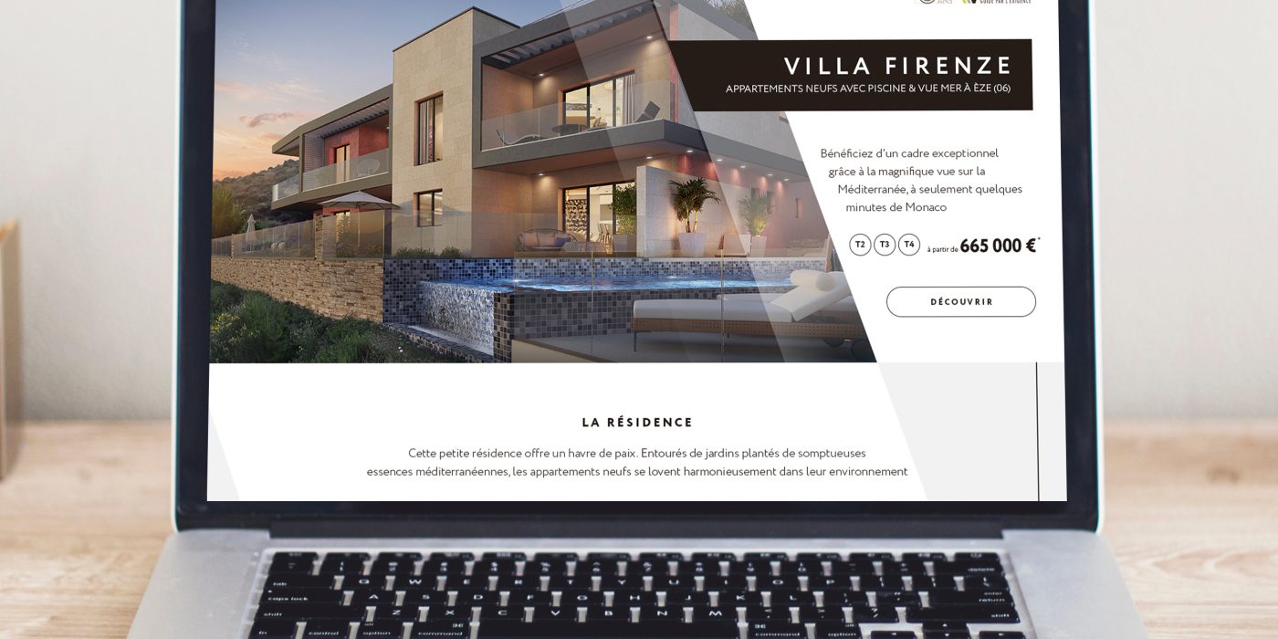 Création d’une landing page pour le lancement de deux programmes immobiliers résidentiels de luxe en bord de mer. L’idée a été de jouer sur les diagonale du logo du promoteur afin de mettre en avant chaque résidence avec un style graphique fort et contemporain, dans les codes du luxe.