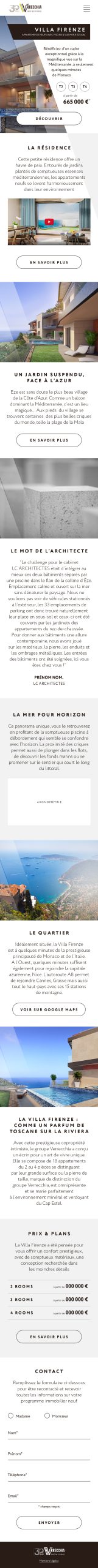 Création d’une landing page pour le lancement de deux programmes immobiliers résidentiels de luxe en bord de mer. L’idée a été de jouer sur les diagonale du logo du promoteur afin de mettre en avant chaque résidence avec un style graphique fort et contemporain, dans les codes du luxe.
